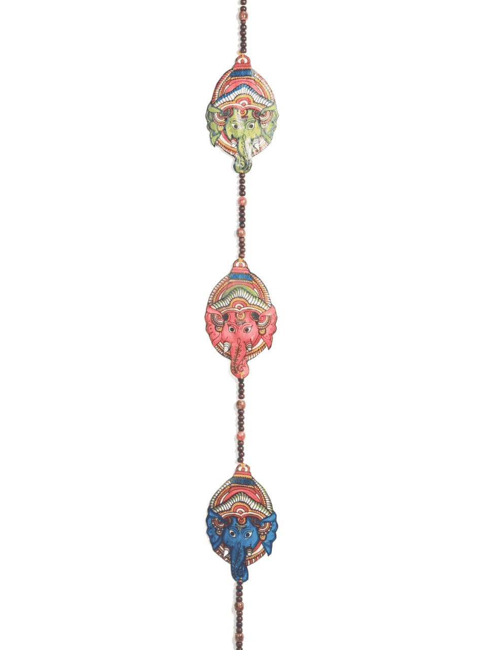 Welcome prosperity and tradition into your home with this beautiful Leather Ganesha Toran, handcrafted using the time-honored art of Tholubommalata leather puppetry from Nimmalakunta, Andhra Pradesh. This unique toran comes with two strings, featuring intricately hand-painted Lord Ganesha motifs along with vibrant floral designs, created using natural, eco-friendly colors.