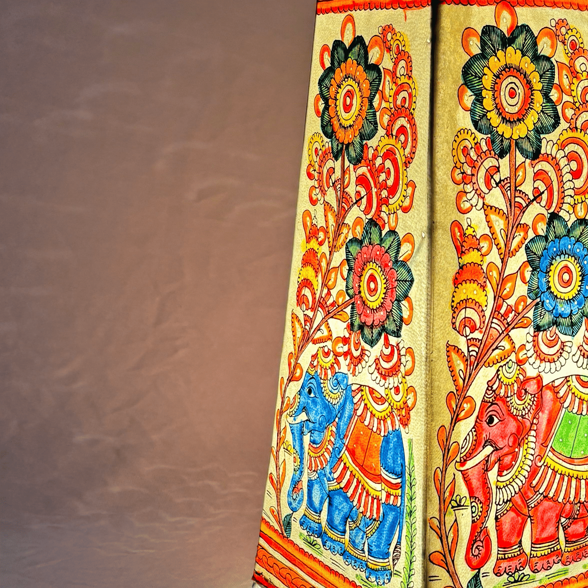 Celebrate the timeless elegance of India’s rich storytelling traditions with our handcrafted Tholubommalata Elephant Design Leather Lamp. Made using the traditional Nimmalakunta leather puppetry technique, this 12-inch square lamp features a beautifully hand-painted elephant motif — a symbol of wisdom, strength, and prosperity in Indian culture.